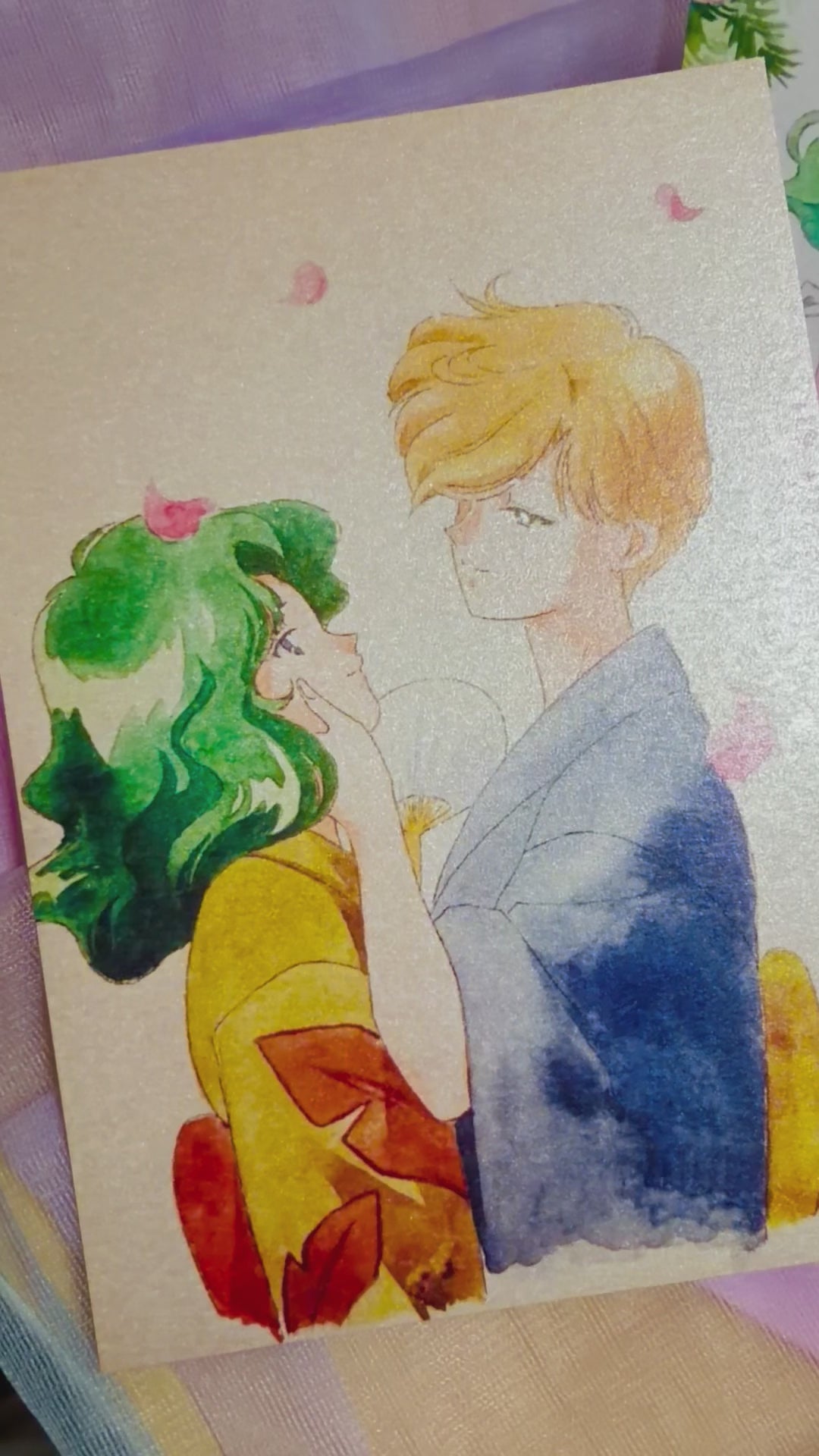 The set includes four A5 postcards and three random mini stickers.